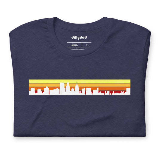4 Line Gld Palm Tee || Midnight Navy Heather